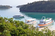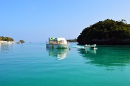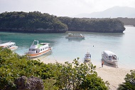 川平湾有名な「ミシュラン」で川平(かびら)湾が三ツ星に、石垣島が二ツ星に格付けされました。テレビやガイドブックによく出ているので一度行ってみたいと思っていた場所です。日本でもこんな綺麗な場所があるんですね。エメラルドグリーンの海に青い空最高です。 |
