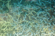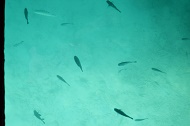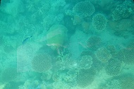 川平湾でグラスボードサンゴ礁と船底が付きそうなところをグラスボートは沖合まで進んでいきます。魚はいますがもっと色鮮やかな熱帯魚を期待していましたが、あまりいませんでした。サンゴ礁は綺麗でした。 |
