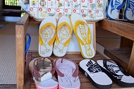 やいま村では沢山の体験があります。島ぞうりアート・貝のお守り作り・などなど。私たちが体験したのは琉球衣装です。洋服の上から羽織るだけなのであっという間に着ることが出来ます。体験料500円マイカメラでもOK。たくさんの写真をマイカメラ・携帯でこころよく撮ってくれました。左の写真は記念に購入しました。楽しい思い出が出来ました。 |