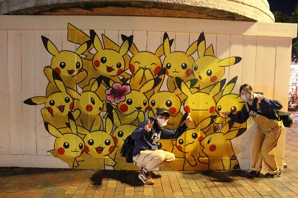 「ラブカス」ハートの花束が描かれた壁。「ピカチュウ」が沢山描かれた壁。ポケモンの標識も沢山。ポケモン好きにはたまらないですね。