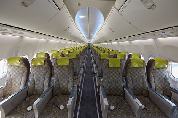 座席は3列×3列少し小さめの飛行機ですが揺れもあまり感じず約2時間30分快適な空の旅でした。ドリンクサービスもあり客室乗務員の方もとても親切です。