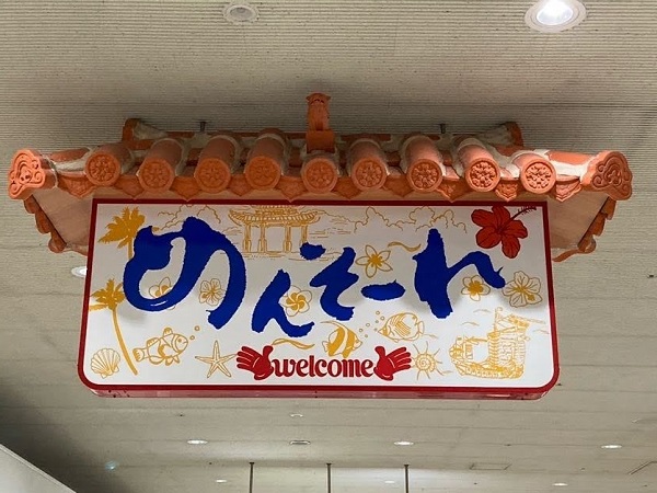 那覇空港にと到着。ウエルカム看板「めんそーれ」嬉しいですね。