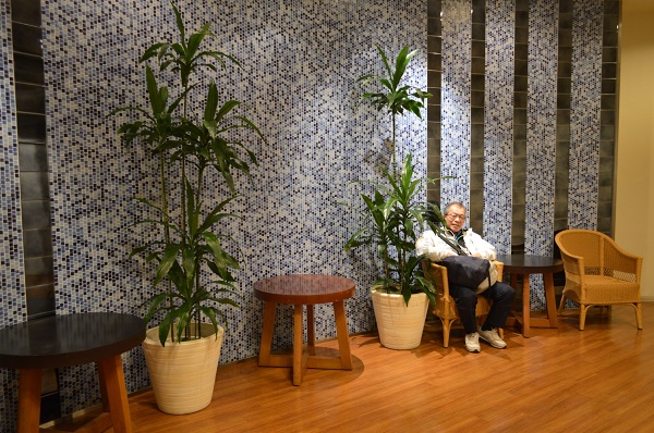青に統一されたチェックカウンターも南国ぽいところもいいですよね。駐車場は少し遠いですが夜遅くても電話一本で迎えに来てくれるので不便さはありません。