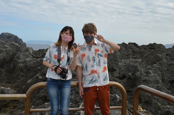 高さ30mの断崖絶壁が約2kmにわたって続く残波岬。海の向こうにある島は何だろうね?と皆で話していました。調べたところ慶良間諸島が眺望できるそうです。