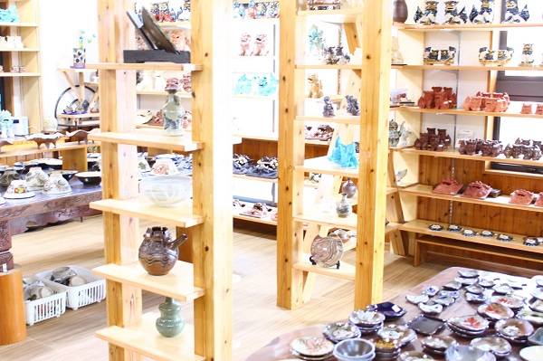 やちむんの里には独立し営業する19の工房が立ち並び。各工房では壺屋焼や読谷山焼などさまざまなやむちんが作られています。