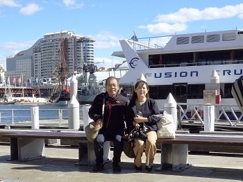 食事が終わり少しの時間があるのでダーリングハーバー散歩です。 散歩というよりくつろいでいます。