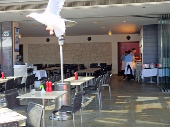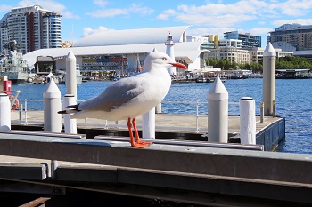 ダーリングハーバーに沢山のかもめがいるのですが、食事をしている間みんなが食べている物を 狙っています。隙を見せると取られてしまいます。注意が必要です。