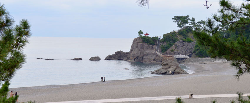 美しい松林が映える景勝地。高知が生んだ英雄坂本龍馬像が立っている |