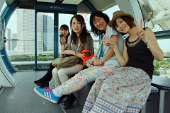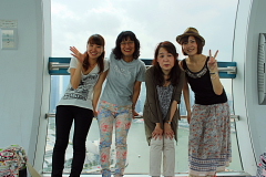遠くから見た感じではわかりませんでしたが、近くに来るとゴンドラの1個1個がとても大きいんです。食事ができるそうなんですが、これで納得しました。28人乗りということなんですが、とてもすいていて私達4人の貸切状態です。