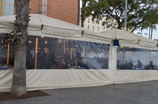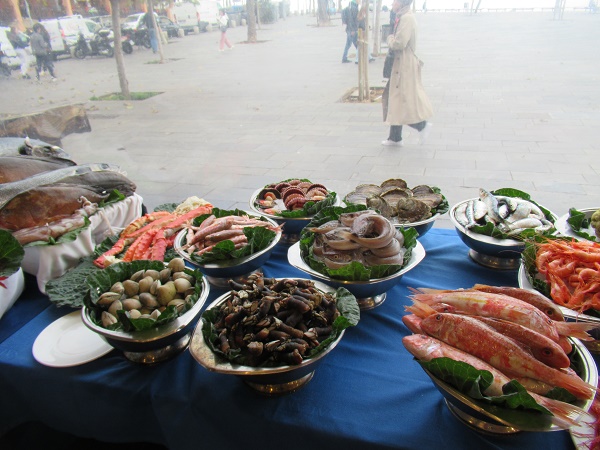 楽しみにしていたパエリア、スペインと言ったらやっぱりパエリアですよね。海を臨むテラス席(ビニールテント的なもの)の海鮮レストラン。