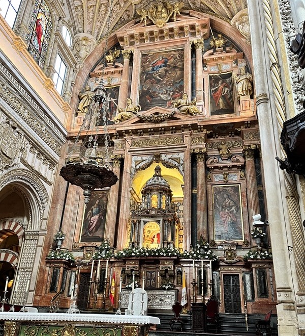 「中央祭壇」16世紀にメスキーターの中央部に建造されたキリスト教の礼拝堂。ゴシック様式のドーム、バロック様式の祭壇など異なる様式が調和しています。