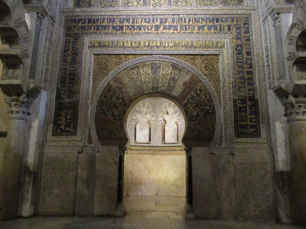 「ミフラーブ」はメッカの方角示すくぼみで、コーランの一節が刻まれた馬蹄型のアーチはコルドバ建築の最高傑作。