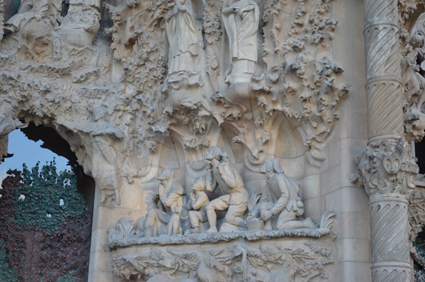「誕生のファサード」建物の北東側の入り口にあたり、ガウディ自らが指導をとって最初に完成した部分。キリストの誕生に関する