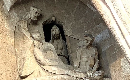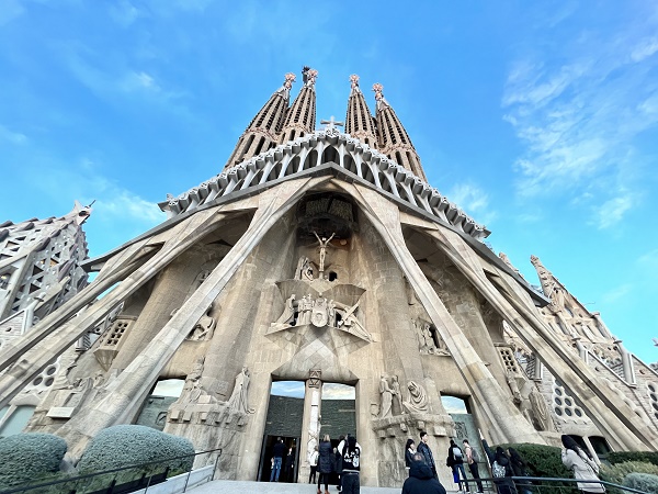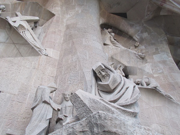 「受難のファサード」聖堂の南西側にある入り口。扉の上の彫刻などの装飾をカタルーニャ出身のアーティスト、ジョセブ・マリア・スビラックが担当。