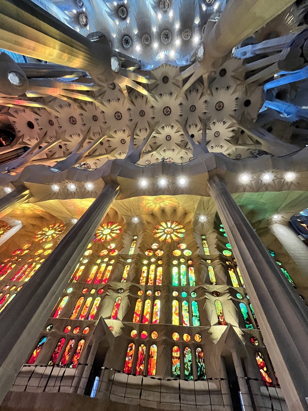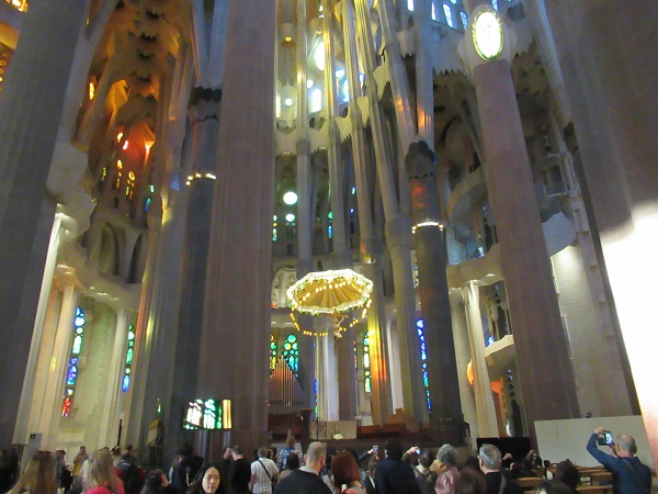 サグラダファミリア大聖堂内部は柱の形状とデザインだけを取っても非常に独創的です。ガウディは自然界の摂理に従った研究を行い、天井に近づくほど内側にカーブを描く「樹木の様な柱」を、自らが死去する2年前の1924年に考案しました。
