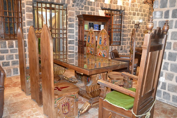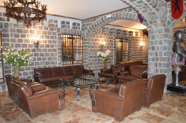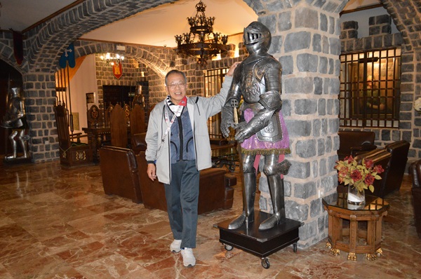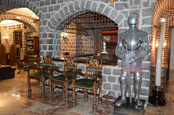 地下のロビーは中世風の内装で甲冑や置物などが置かれ独特な雰囲気があります。
