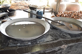 駐車場の一角に砂糖を作る工程が設置してあります。ココナツを煮詰める所。
