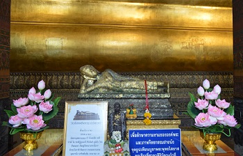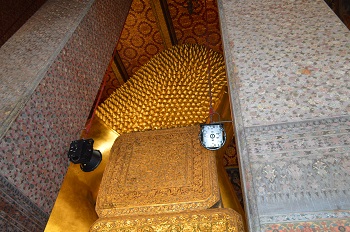 ワットポーは別名「涅槃寺」ともいわれている全長46m釈迦像が横たわっています。 とっても大きく黄金の像でピカピカに光り輝いています。