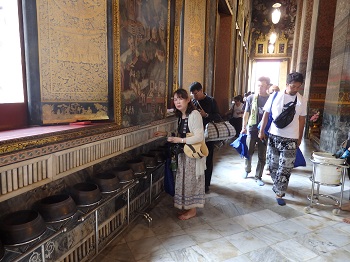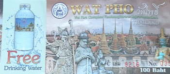 入場料100バーツ、タイ人はここも無料のようです。この券でミネラルウオーター1本もらえます。ワットポーも ショートパンツ・タンクトップ・サンダルそして本堂内は帽子もNGです。