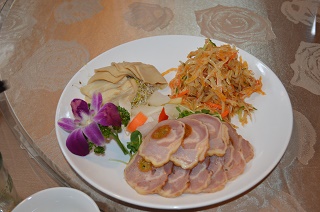ここでは郷土料理が、ツアーなのに沢山の料理が出てきました。 丸テーブルに大皿で皆でシェアして食べます。