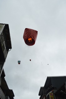 もう一面は切実な願い。健康で日々暮らせますようにです。 同時に手を放します。ランタンをあげる際係りの人が写真を撮ってくれますが、カメラは1台のみですね。