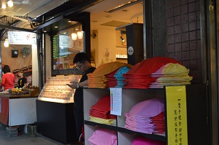 売店には沢山のランタンが売られています。ツアーの為色は決まっていました。紅色ですね。 紅色はお祝い事だそうです。橙色=財産、黄色=学業・事業、緑色=成長、白色=健康などなどあるそうです。 個人で来たときは是非色(願い事によって色が違う)を選んであげましょう。