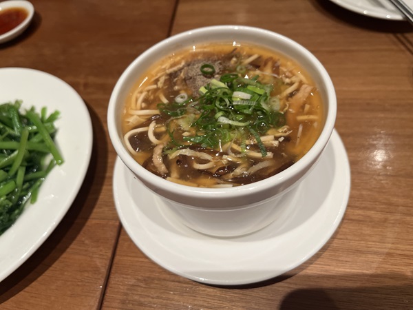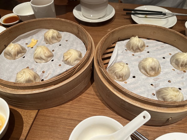 1個当たり皮5g、餡16g、合計重量21gの小籠包は、18のひだで形作られています。これがおいしさを生む黄金比率なのだとか。あら、口に入れても熱くない。何故かというとできたてを頬張ってもやけどしないくらいの熱さ加減でテーブルに運ばれてくる心配りがあるそうです。タレは醤油1:酢3の比率がおすすめです(お店の人が作ってくれます)。