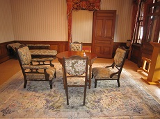 金木太宰治の斜陽館です。太宰治の生家で、明治の大地主津島源右衛門が建築した入母屋作りの建物で明治40年6月に落成しました。 金木1階11室、2階8室、付属建物や泉水を配した庭園など、合わせて680坪の豪邸となっています。2階に上がると、立派な洋間がありました。 金木ふすまの和室も素晴らしいものです。 金木 金木 金木 |