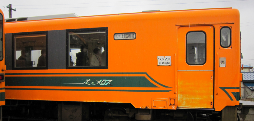 津軽鉄道「走れメロス号」で、川部駅〜五所川原駅間を走っています。